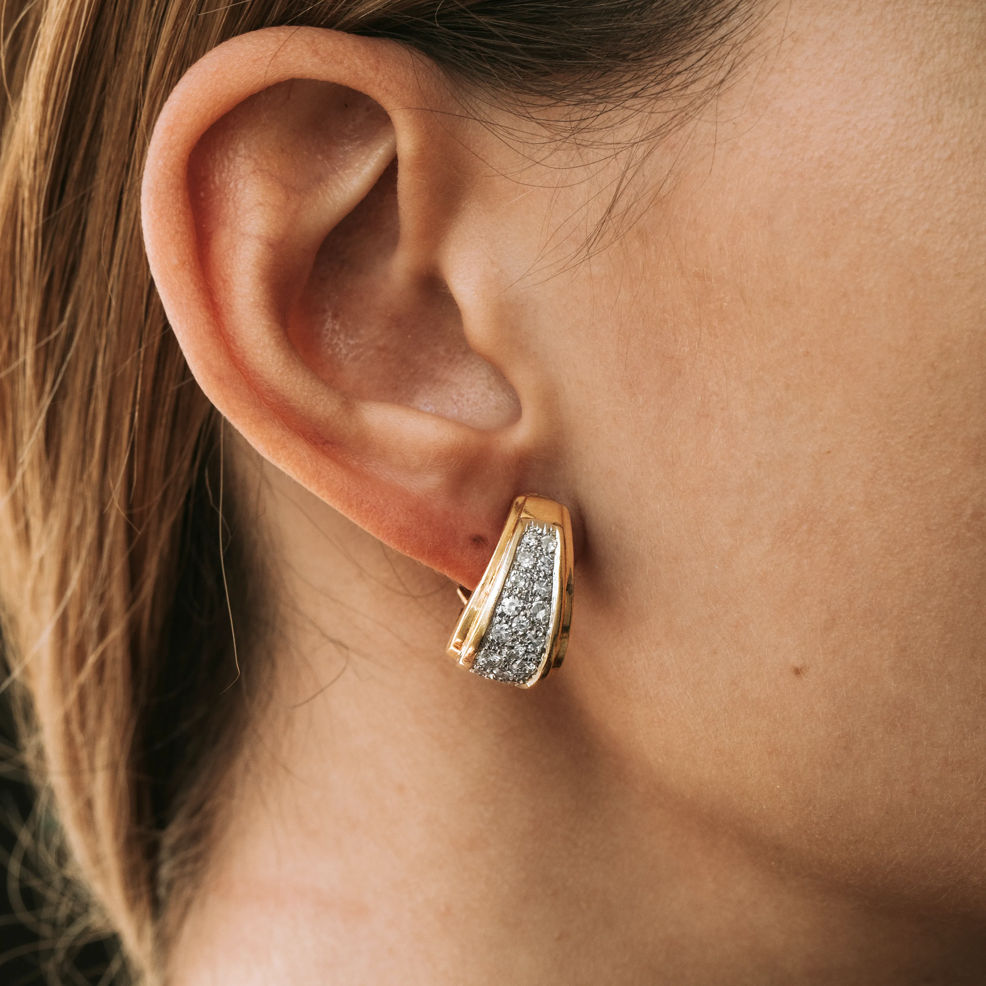 Pendientes vintage de oro amarillo y blanco con 52 diamantes talla brillante y antigua.