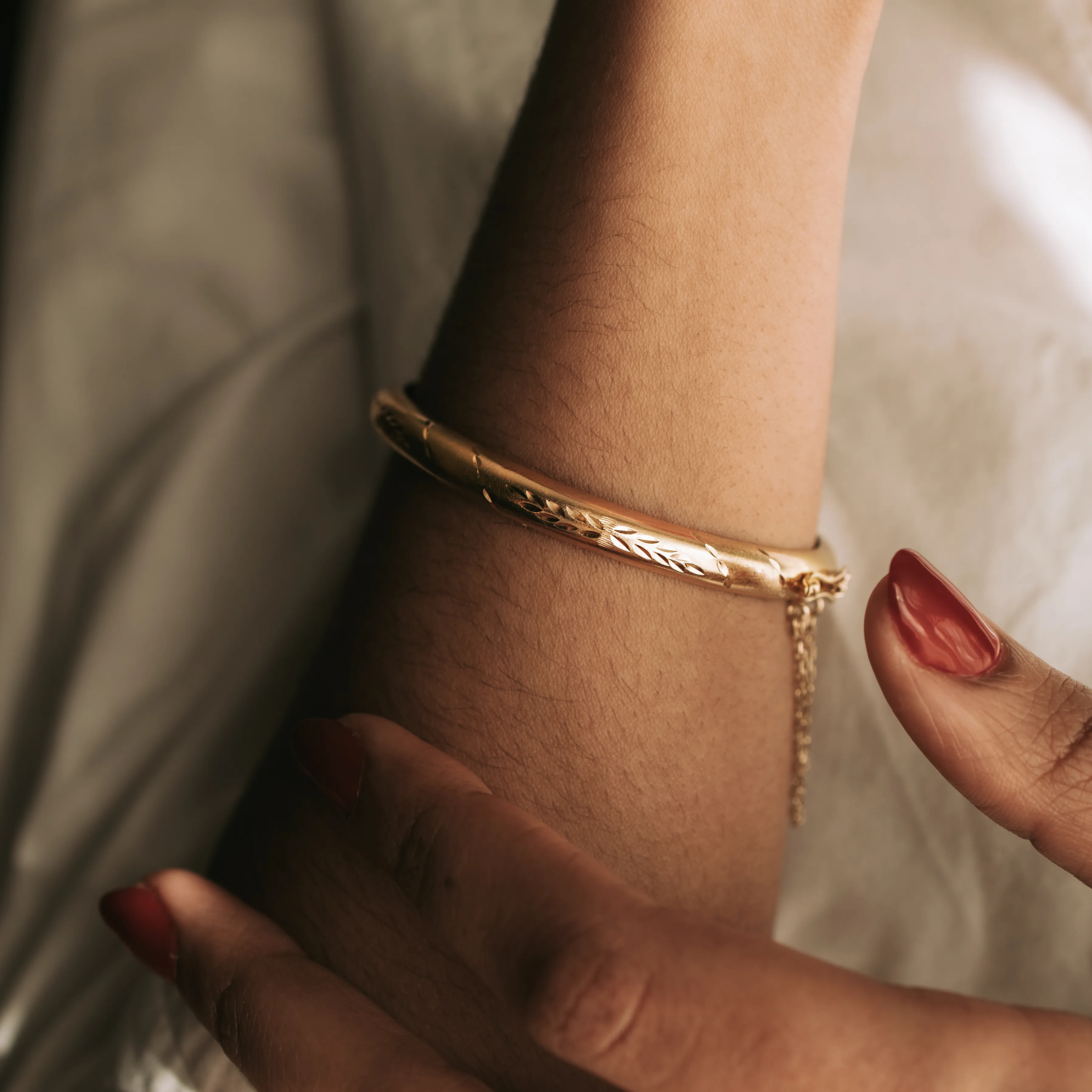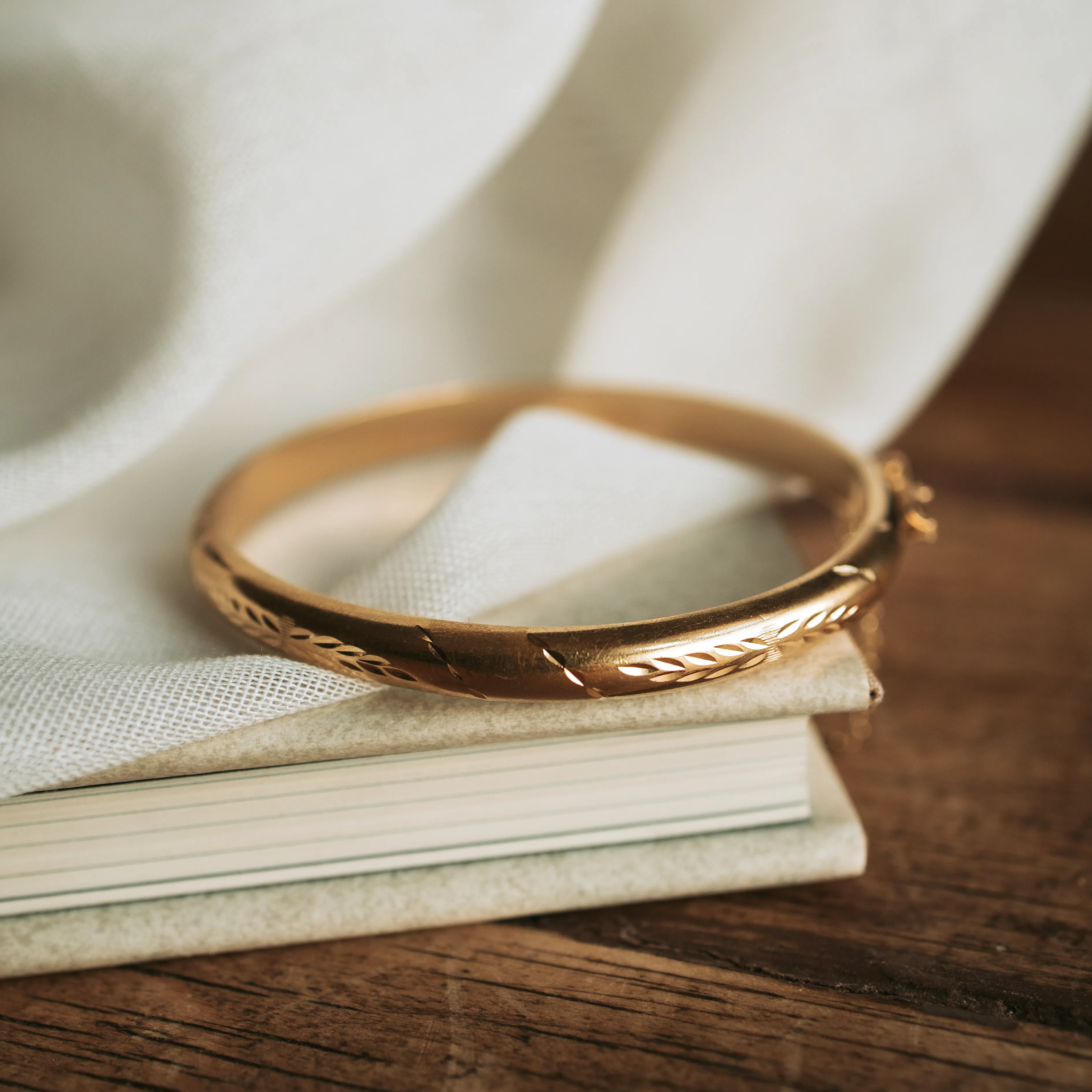 Pulsera de media caña vintage de oro amarillo con motivos vegetales