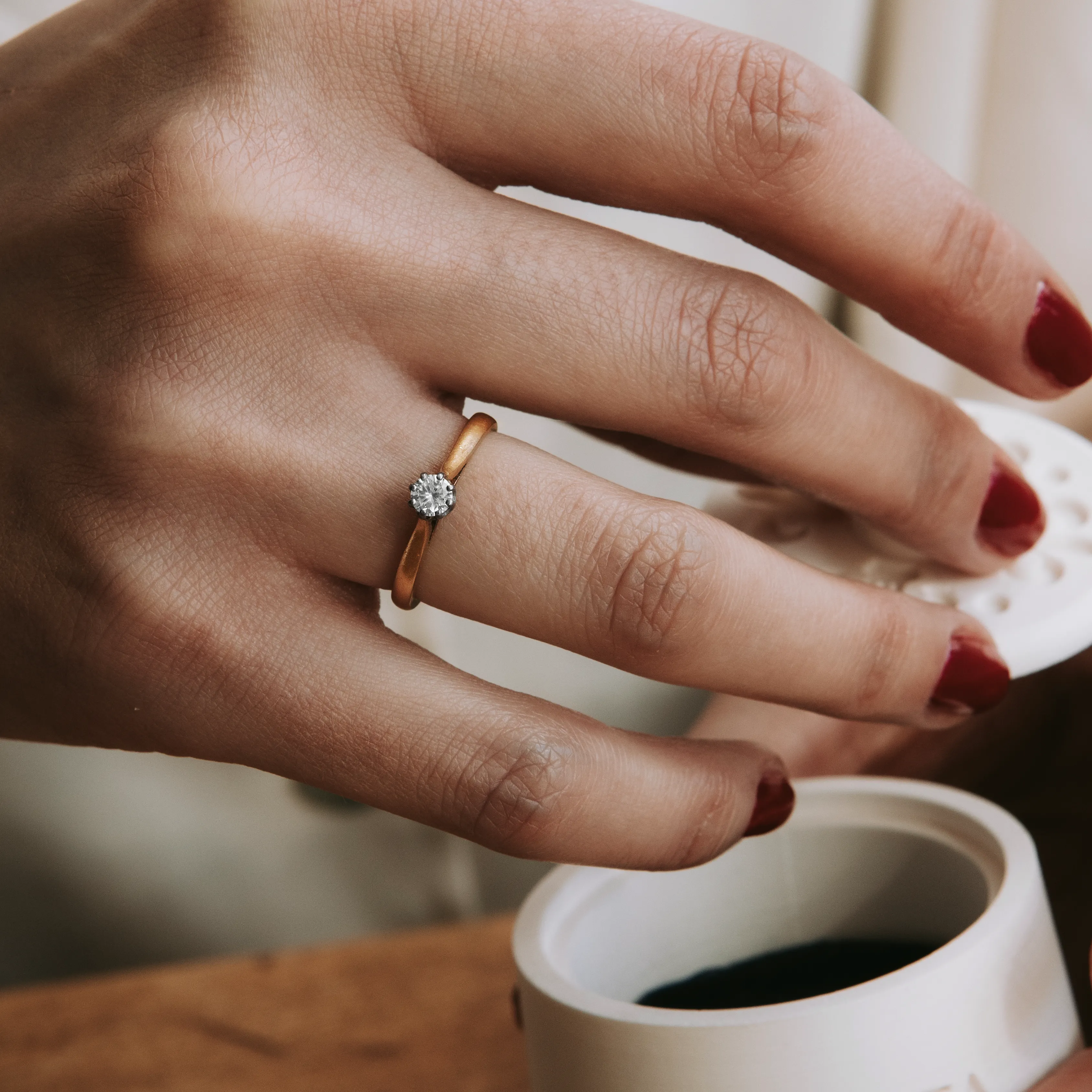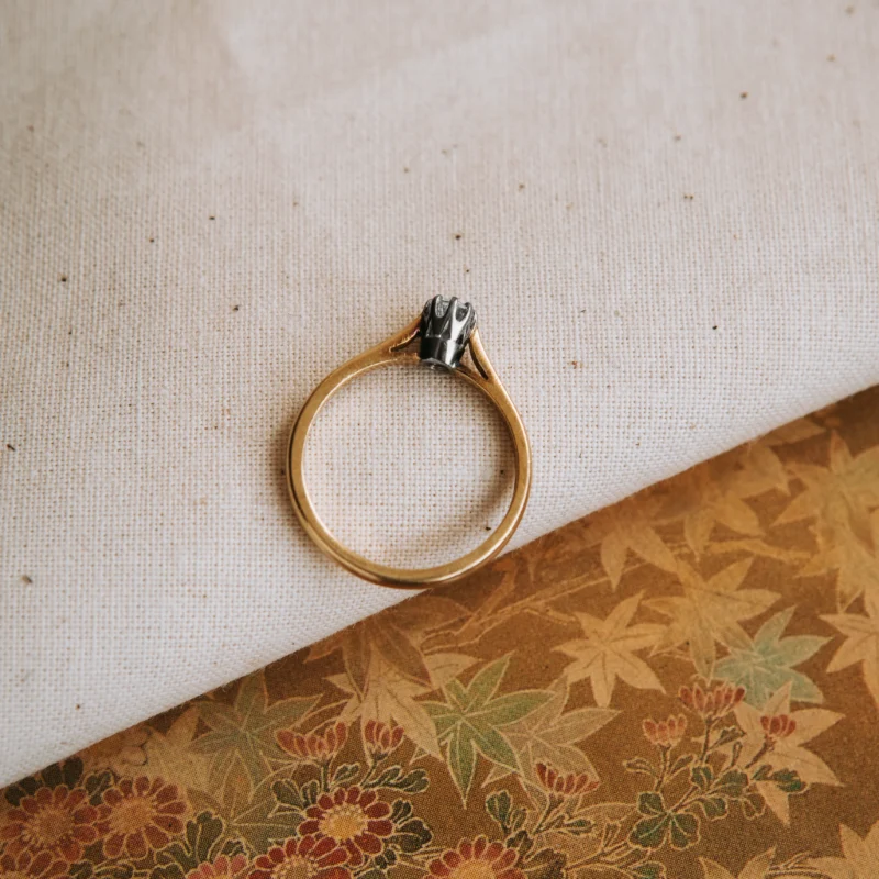 Solitario vintage de oro amarillo y blanco con diamante talla brillante.