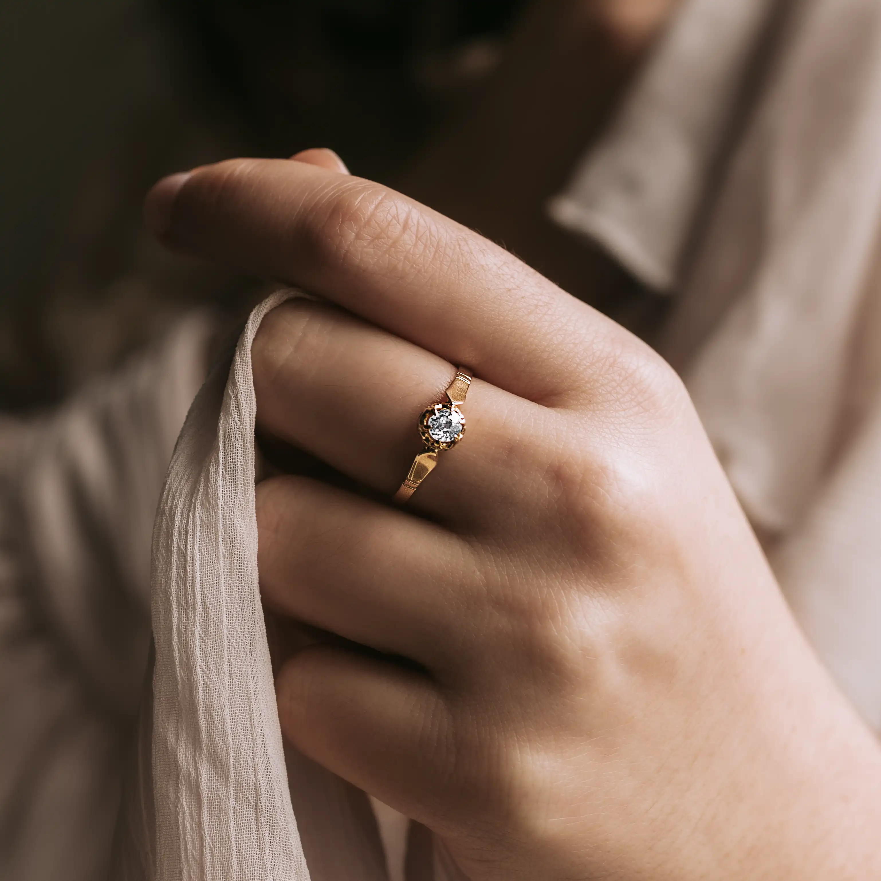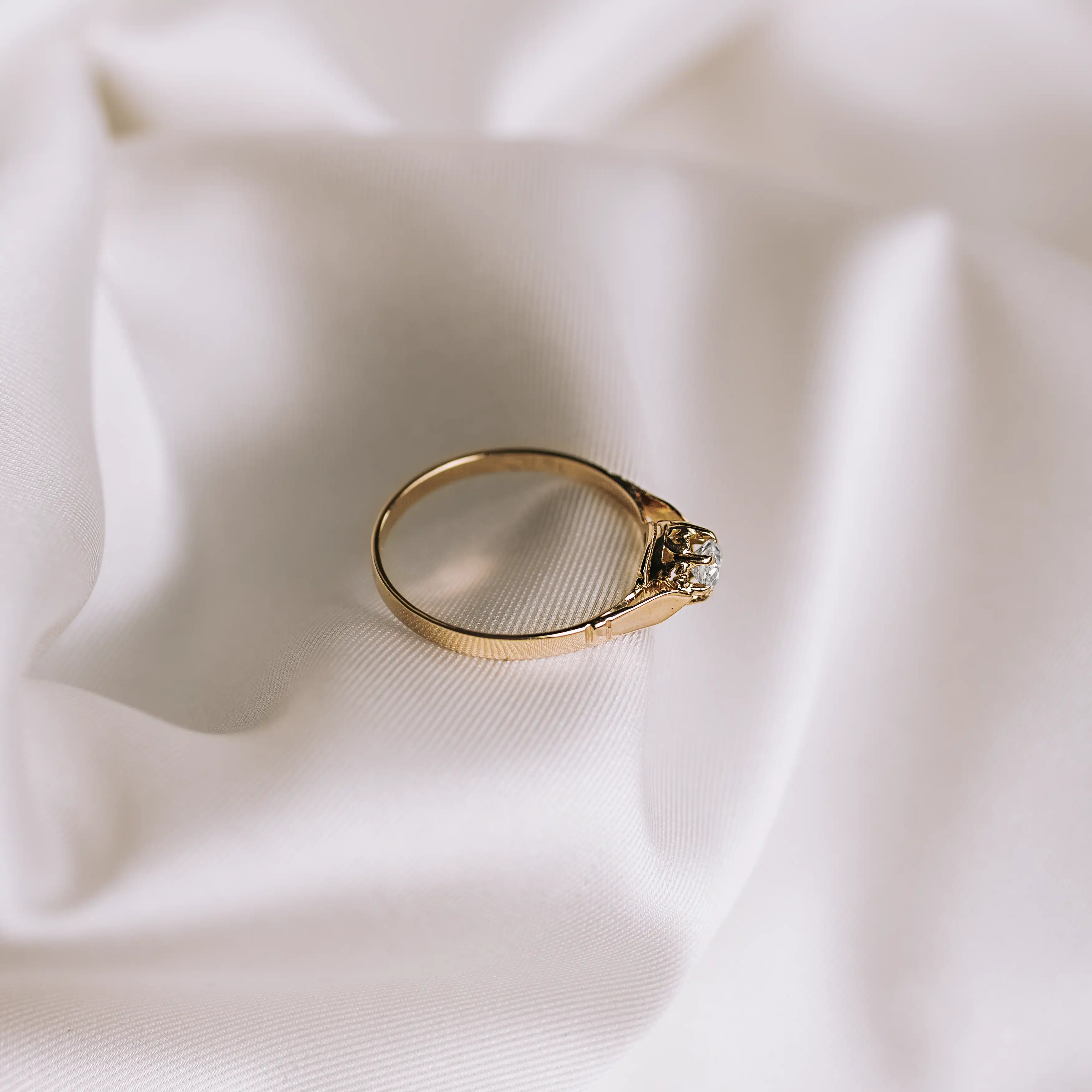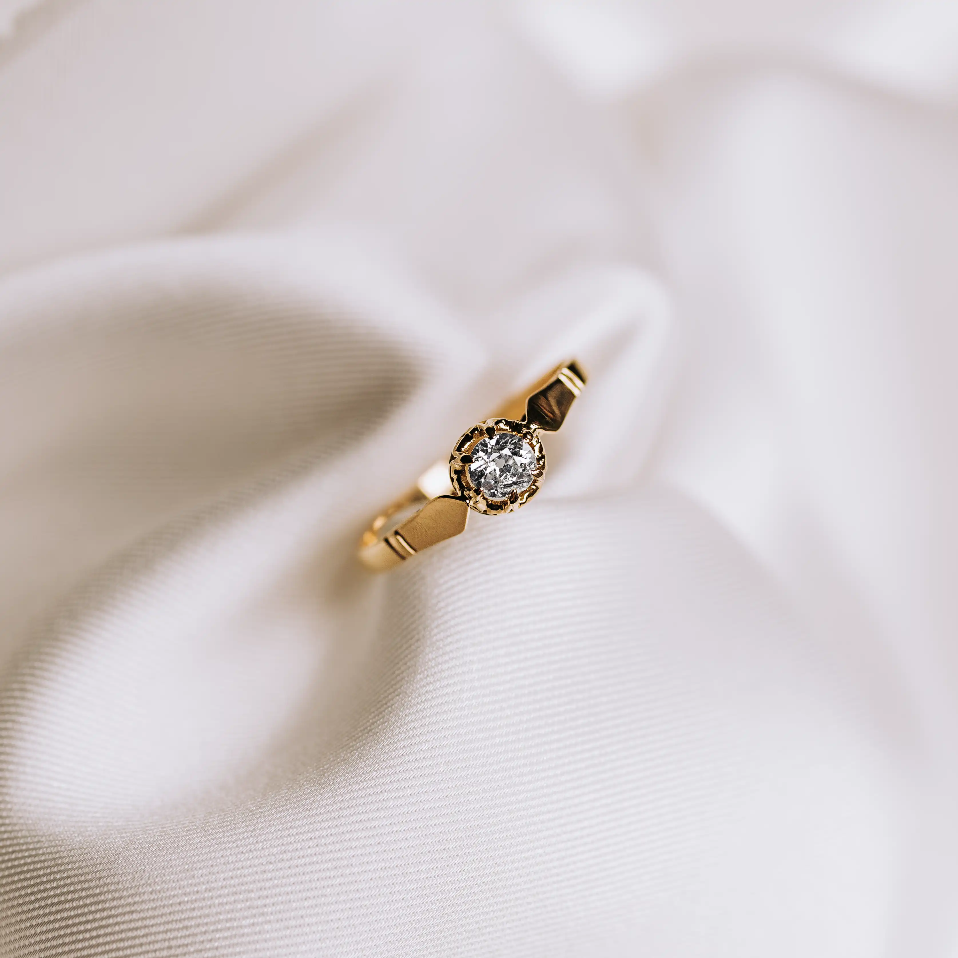 Solitario antiguo de oro amarillo con diamante talla antigua.