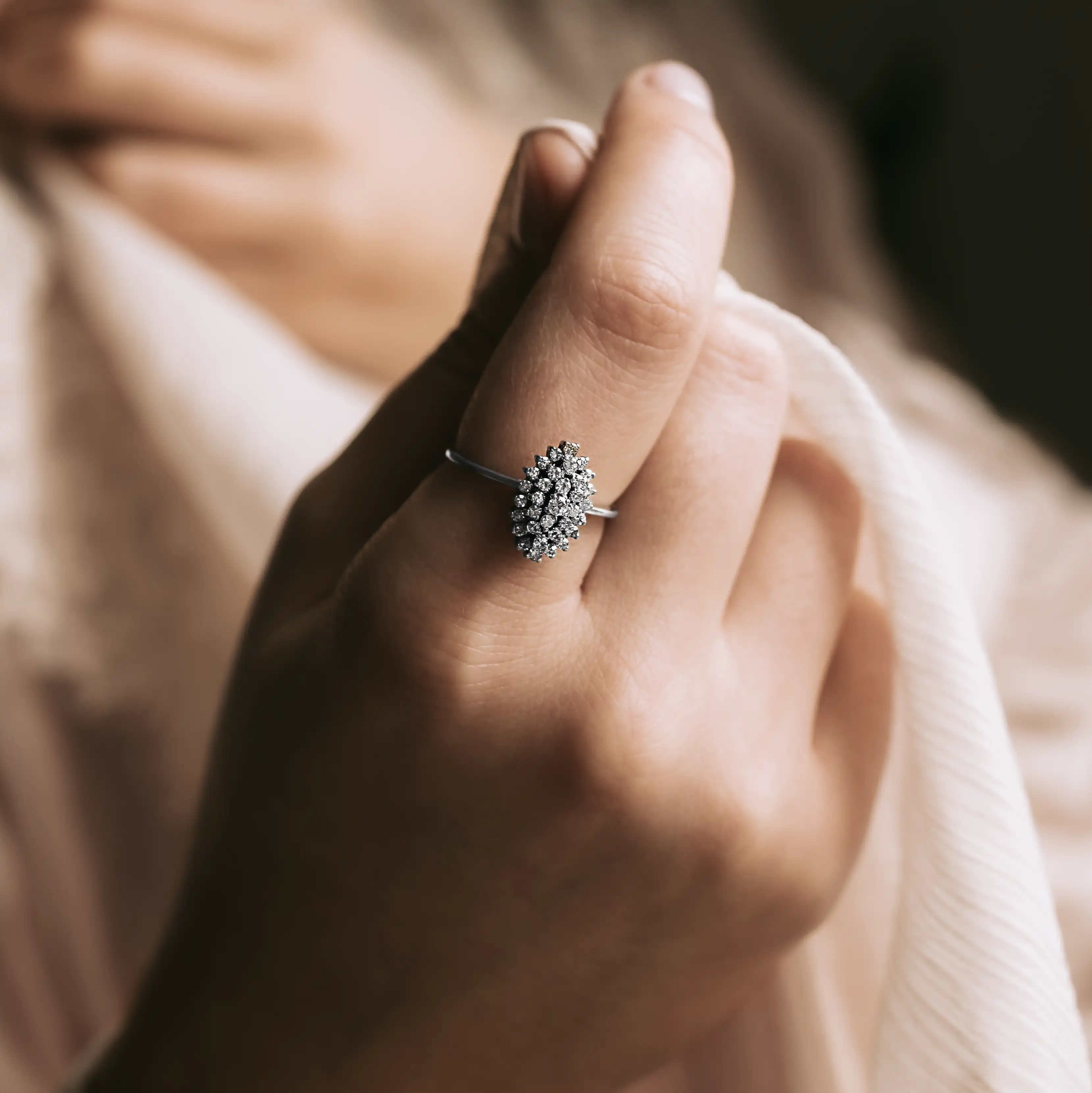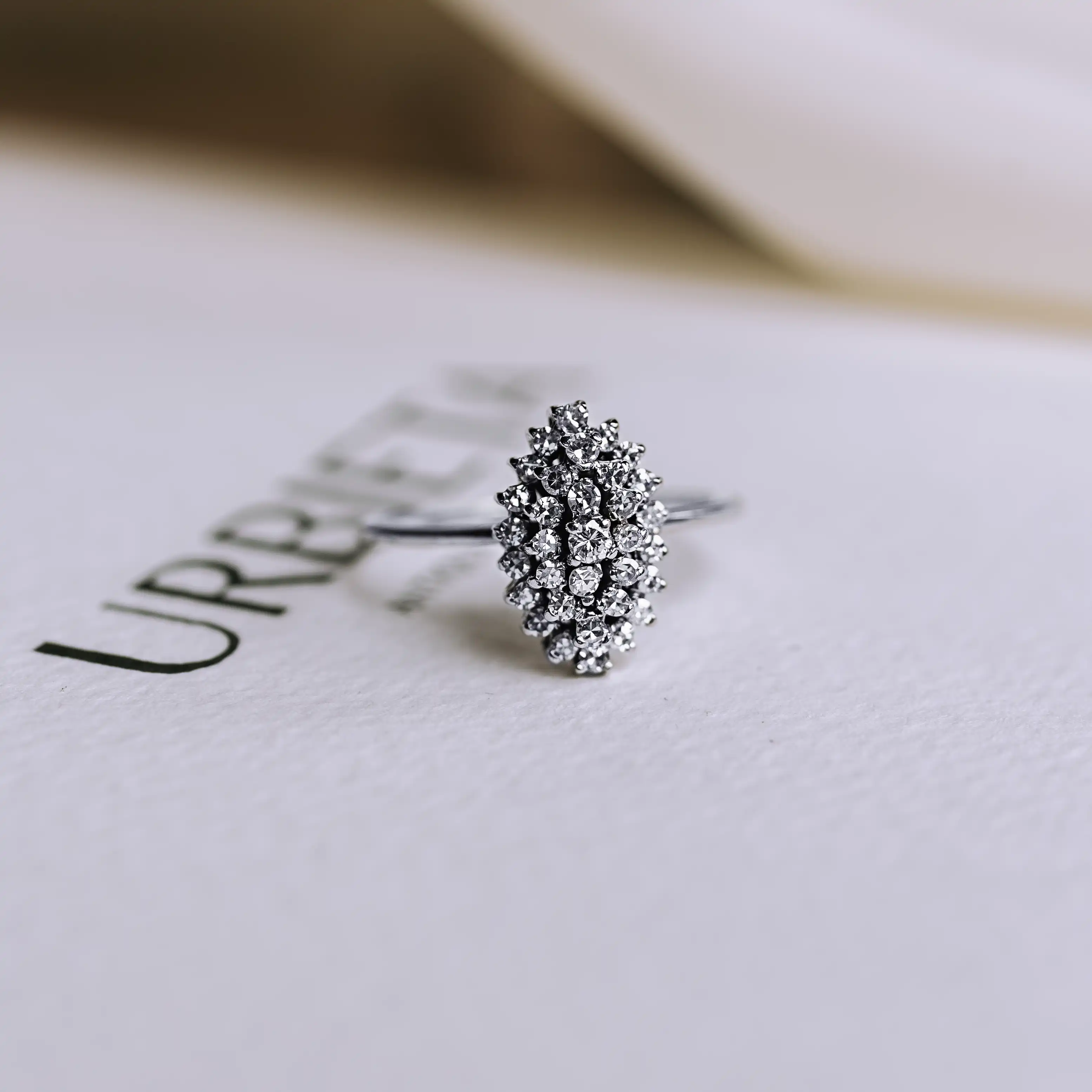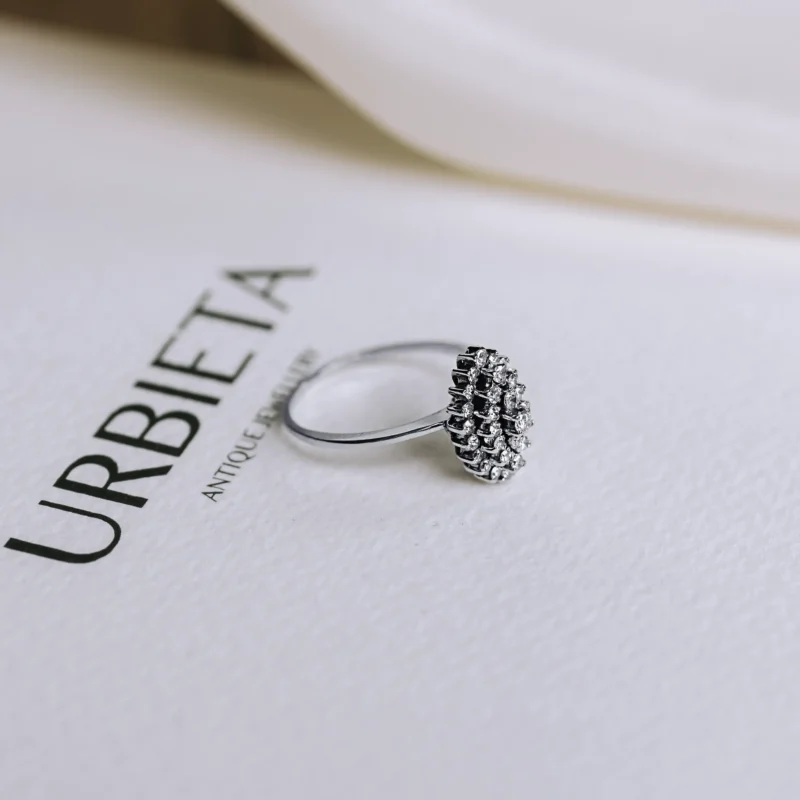 Lanzadera vintage de platino con 33 diamantes talla brillante y antigua.